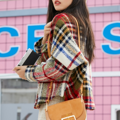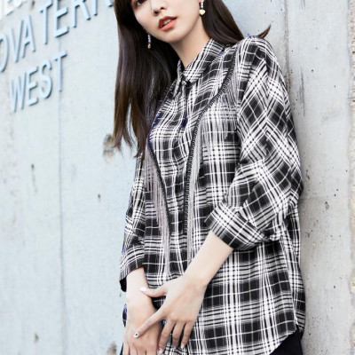 VEROMODA秋季新款流苏装饰格纹衬衫淮安金鹰三楼专柜发货