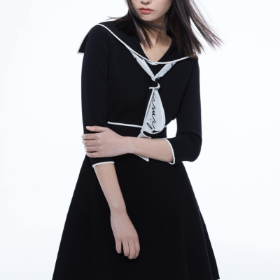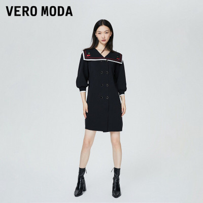 VEROMODA2022秋冬新款海军领双排扣刺绣针织连衣裙