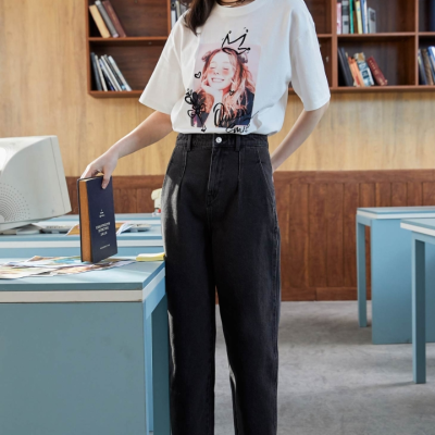 veromoda迪士尼彼得潘小飞侠系列卡通印花装饰高腰直筒牛仔裤淮安金鹰三楼专柜发货