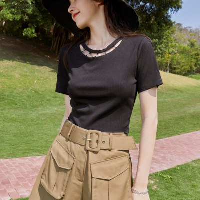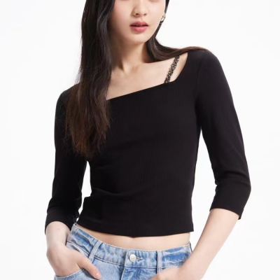 veeomoda春夏可拆卸链条露肩修身上衣淮安金鹰三楼专柜