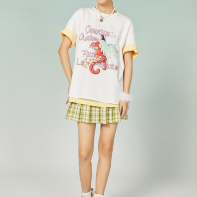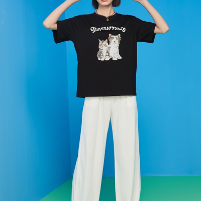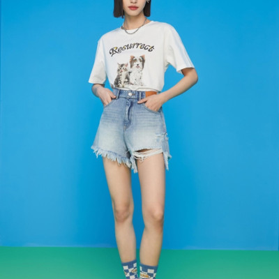veromoda2022年新款纯棉可爱动物印花字母T恤