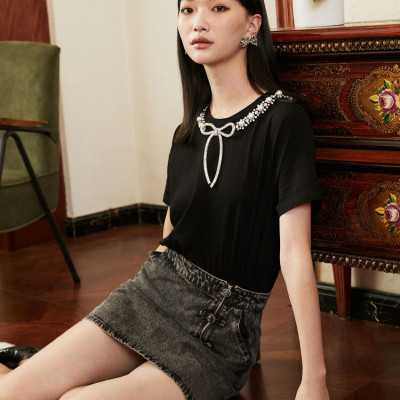 VEROMODA水钻蝴蝶结黑色T恤淮安金鹰三楼专柜发货