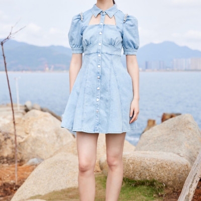VEROMODA泡泡袖牛仔连衣裙淮安金鹰专柜三楼发货