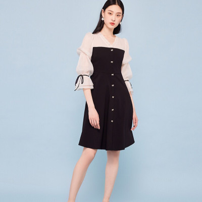 VEROMODA甜美薄纱拼接泡泡袖牛仔连衣裙淮安金鹰专柜三楼发货
