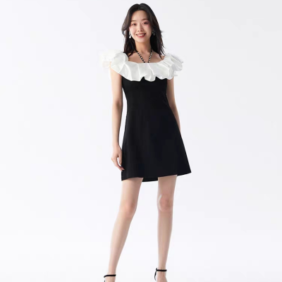 VEROMODA秋冬简约甜美黑色收腰显瘦小香风连衣裙