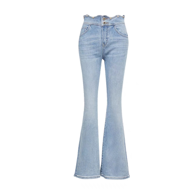 VEROMODA2023夏季新款浅蓝色高腰牛仔微喇裤