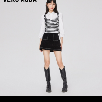 【618新款】VEROMODA 女团风格纹高腰百褶短裙 321216039D13 淮安金鹰三楼专柜发货