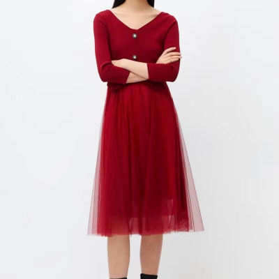 VEROMODA2024年澳本红色针织两件套纱裙淮安金鹰三楼专柜发货