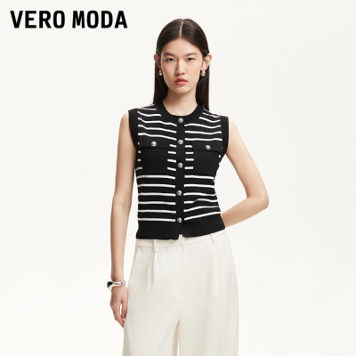 【618新款】VEROMODA 字母装饰单排扣针织半袖上衣321224003C39 淮安金鹰三楼专柜发货