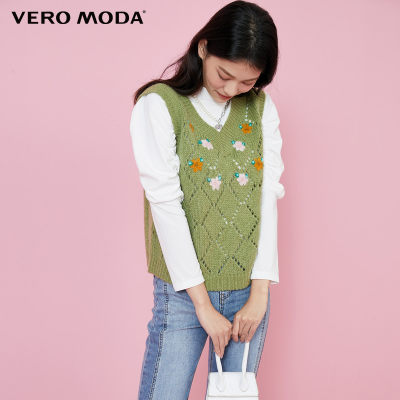 【618新款】VEROMODA 羊毛马海毛镂空绣花V领无袖背心针织衫 321113009C01 淮安金鹰三楼专柜发货
