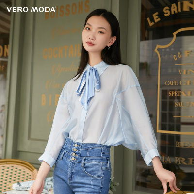 【618新款】VEROMODA 莫兰迪色飘带装饰七分袖衬衫女 321231026C41 淮安金鹰三楼专柜发货